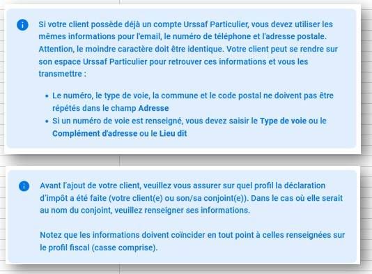 /!\ Attention, l'adresse que vous indiquez doit correspondre très précisemment à celle de votre déclaration d'impôts. Voici ce que l'Urssaf et les Impôts nous indiquent :